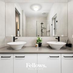 Step through the front door and be greeted by a spacious, light-filled layout. The main bedroom is privately positioned at the front of the home and captures stunning natural light through the large windows. Complete with a walk-in robe and a sophisticated ensuite, this retreat showcases white cabinetry with striking black hardware, dual bowl sinks, mirror, and a large glass shower. All finished to perfection with modern touches.