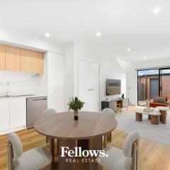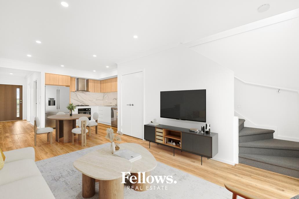 Step inside to a fresh and inviting atmosphere, where natural light, clean finishes, and a modern colour palette set the tone. The ground level offers open plan living that flows seamlessly from the entry to the kitchen and dining area, a perfect space for both everyday living and entertaining. The kitchen boasts extended stone benchtops, stainless-steel appliances, a white marble styles splash back, dual white and natural wood cabinetry, LED lighting, and plenty of storage, creating a functional yet stylish workspace overlooking the living area.