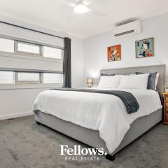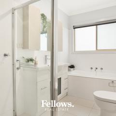 Step inside and you’re greeted by a layout designed for real living. The main bedroom sits privately at the front, offering a peaceful retreat complete with split system comfort, a custom walk-in robe and a light-filled ensuite featuring a glass shower, vanity and toilet.