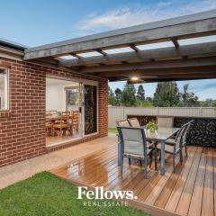 Find everything you need at 40 Kenneth Road, Pakenham, where a beautiful brick facade, wide corner block and double car garage instantly hint at the comfort and convenience awaiting inside.