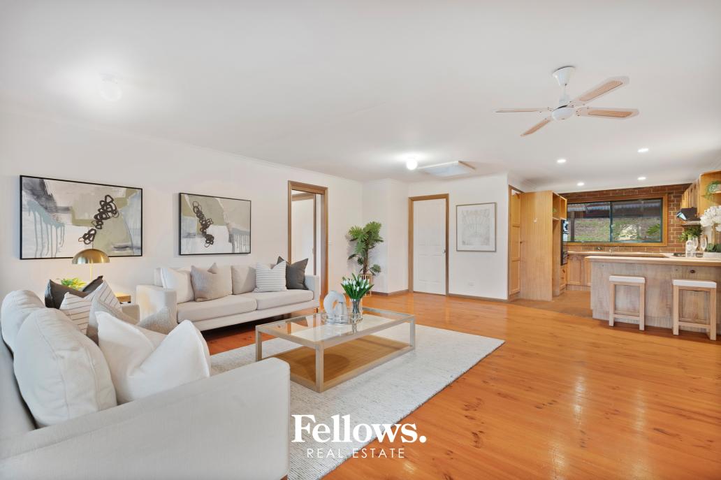 Step inside to a light-filled open-plan living, dining and kitchen domain, where expansive windows and sliding doors invite the outdoors in. Overlooking the welcoming front porch, this inviting space is enhanced by a ceiling fan for year-round comfort — ideal for everyday living and effortless entertaining.